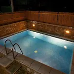 别墅距离最近的公共汽车站仅100米. 客人还在游泳池欢乐畅游.